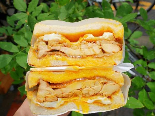 部落客 蘿莉貝兒-第一次當人妻就上手 這樣形容:「蛋液呈現爆漿噴出的狀態,雞腿排皮煎的脆脆的,肉排本身很軟嫩,吐司也是偏鬆軟的質地;鮮奶茶又濃又甜的風味,搭配上鮮奶,推薦!」