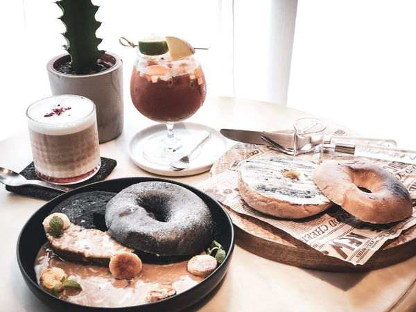 部落客 Knock Knock! Peggy's Door :) 這樣形容:「大理石奶油起司貝果抹醬非常美麗,是店內人氣貝果,鹹奶油加上竹炭變成吸睛好拍的甜點,附上一小杯的蜂蜜中和鹹奶油的鹹膩,趁著貝果熱熱的時候享用最美味。」
